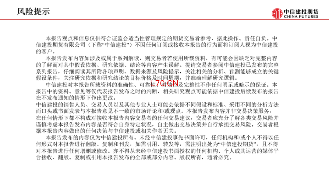 本报告观点和信息仅供符合证监会适当性管理规定的期货交易者参考,据此操作、责任自负。中信建投期货有限公司(下称“中信建投”)不因任何订阅或接收本报告的行为而将订阅人视为中信建投的客户。本报告发布内容如涉及或属于系列解读,则交易者若使用所载资料,有可能会因缺乏对完整内容的了解而对其中假设依据、研究依据、结论等内容产生误解。提请交易者参阅中信建投已发布的完整系列报告,仔细阅读其所附各项声明、数据来源及风险提示,关注相关的分析、预测能够成立的关键假设条件,关注研究依据和研究结论的目标价格及时间周期,并准确理解研究逻辑。