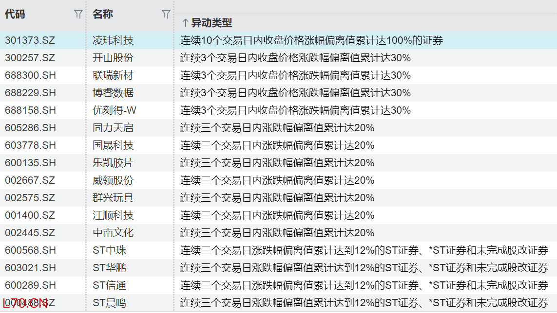 连续异动个股一览
