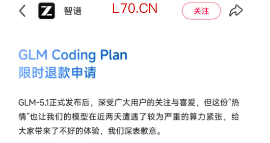 值得一提的是,智谱官方账号于4月13日发布“限时退款申请”,其中提到,“我们的模型在近两天遭遇了较为严重的算力紧张,给大家带来不好的体验,深表歉意”。