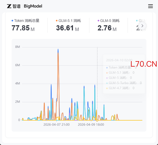 元股证券:ygzq.hk王先生提供的截图显示,截至4月12日,其套餐Token消耗总量为77.85M,最高的一天是4月7日,消耗Token还不到8M。对于限流原因,王先生认为是“超售”,也就是出售的算力超过了平台能承受的范围。