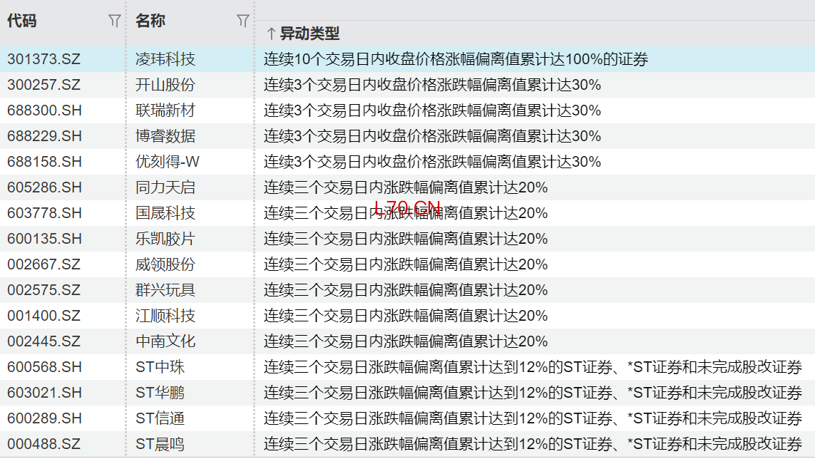 连续异动个股一览
