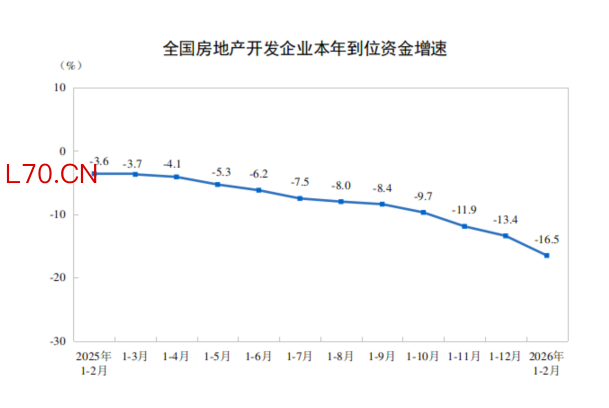 国家统计局:1—2月份,房地产开发企业到位资金同比下降16.5%