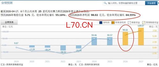 同花顺数据还是显示,近6个月25家机构对赛力斯2026年净利润预测的平均值是98亿元,同比增65%。那么,花旗的盈利预测(106亿)实际上比25家机构预测平均值(98亿)更高。