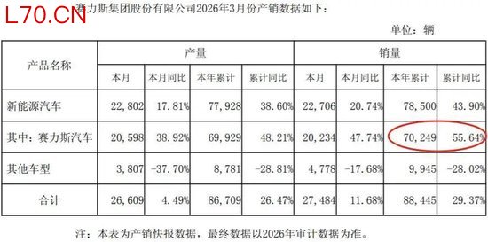 今年一季度,中国汽车产销分别完成703.9万辆和704.8万辆,同比分别下降6.9%和5.6%。国内汽车消费市场总体承压。但根据赛力斯的产销快报,1-3月问界系列累计销量达7万辆,同比增长55%;在去年同期较高基数的基础上,依然保持了快速增长态势,表现依然不错了。